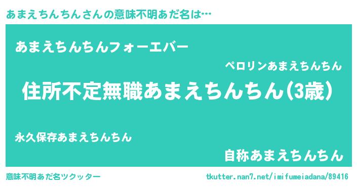 | 欧米人風あだ名 | 『アンジェラ・あまえちんちん』 |