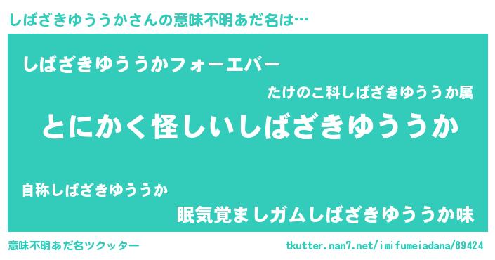 | ポケモン風あだ名 | 『ヒシバザキユウウカ』『シバザダネ』 |