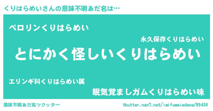 | ポケモン風あだ名 | 『ヒクリハラメイ』『クリチュウ』 |