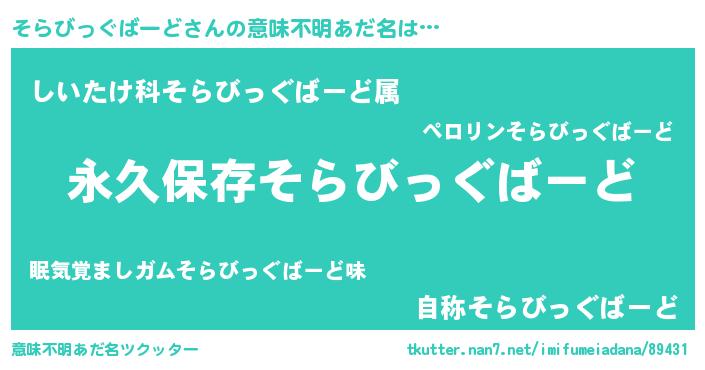 | 男性向けラノベタイトル風あだ名 | 『そらびっぐばーどという概念が存在しない退屈な世界 』 |