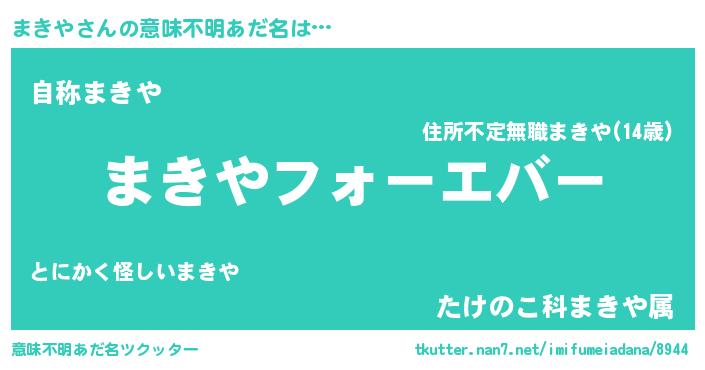 | 女子向けラノベタイトル風あだ名 | 『まきやの婚約者』『まきやアンティーク』 |