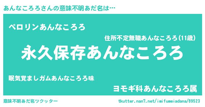 | 男性向けラノベタイトル風あだ名 | 『あんなころろに滅ぼされるだけの簡単なお仕事です』 |