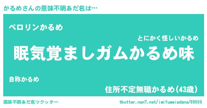 | 女子向けラノベタイトル風あだ名 | 『かるめ恋絵巻』『かるめ姫と円卓の騎士』 |