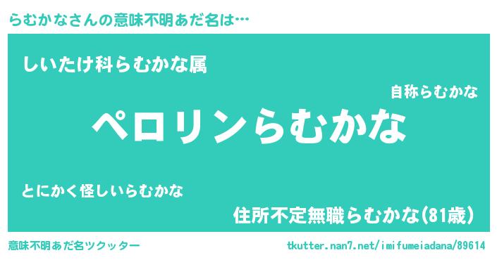 | 男性向けラノベタイトル風あだ名 | 『らむかなの憂鬱』『ラムカナスレイヤー』 |