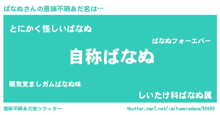 | 男性向けラノベタイトル風あだ名 | 『うちのばなぬが世界を掌握している!』 |