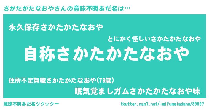 | 欧米人風あだ名 | 『ケンブリッジさかたかたなおや』 |