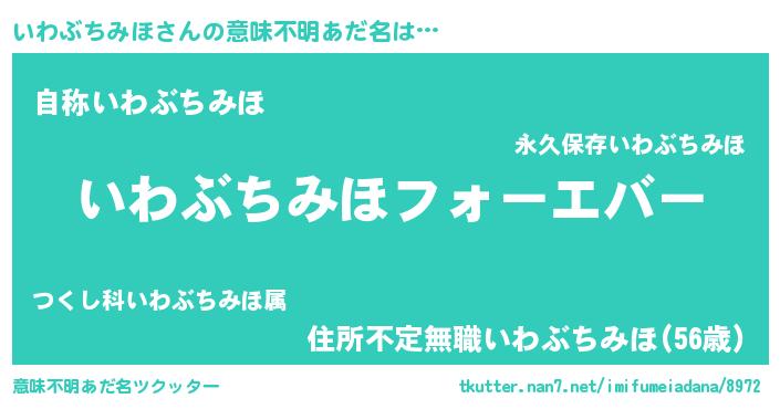 | 肩書あだ名 | 『いわぶちみほ船長』『いわぶちみほ総統』 |