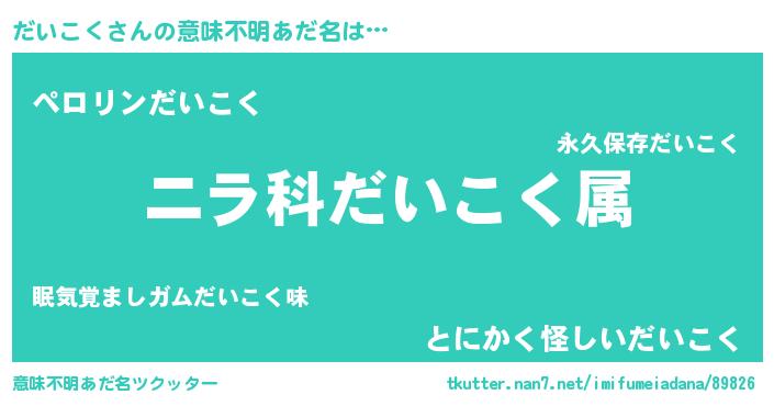 | 胡散臭い通販商品みたいなあだ名 | 『億万長者になれる霊験あらたかなお札…その名も「だいこく」』 |