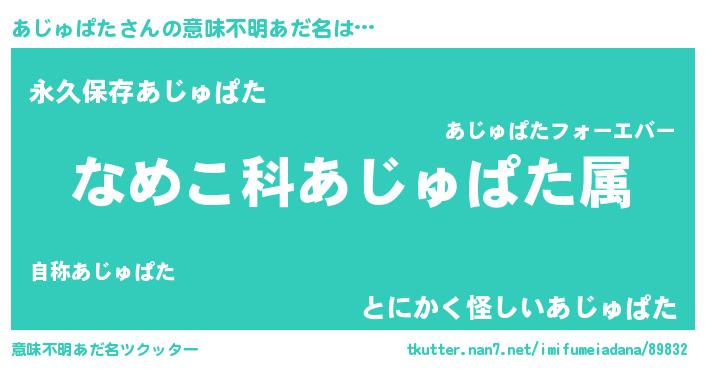 | 男性向けラノベタイトル風あだ名 | 『転生したらあじゅぱただった件』 |