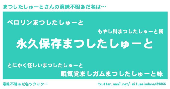 | 胡散臭い通販商品みたいなあだ名 | 『来世でも幸せになれる健康食品…その名も「まつしたしゅーと」』 |