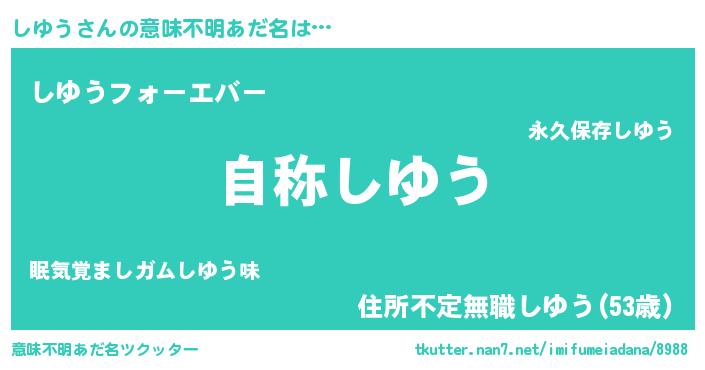 | 男性向けラノベタイトル風あだ名 | 『Re:しゆうから始める異世界生活』 |