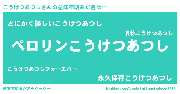 | 男性向けラノベタイトル風あだ名 | 『こうけつあつしの憂鬱』 |