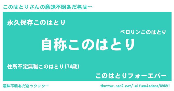 | 女子向けラノベタイトル風あだ名 | 『このはとりなんてお断りですっ。』 |