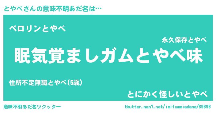 | ヘコむあだ名 | 『とやにー』『とやを』『つくし』 |