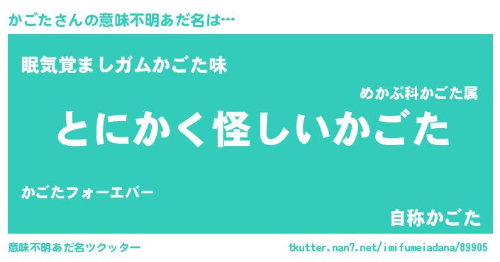 | 男性向けラノベタイトル風あだ名 | 『かごたの嫁は女の子じゃないと思った?』 |