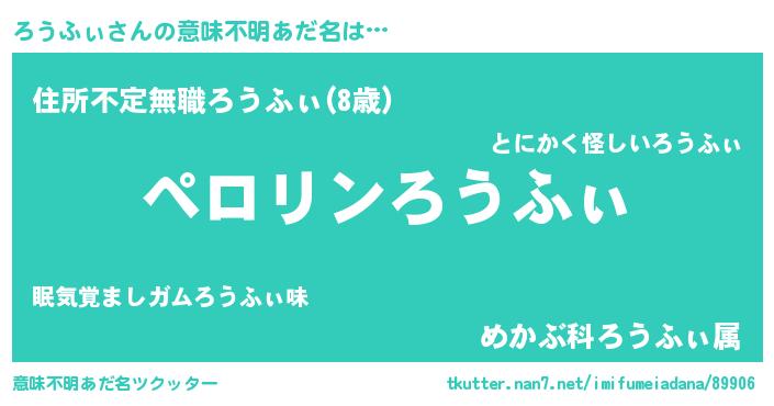 | ファンタジー風あだ名 | 『ロウフェル』『ヴァルロウーナ』 |