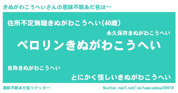 | 男性向けラノベタイトル風あだ名 | 『きぬがわこうへいの憂鬱』 |