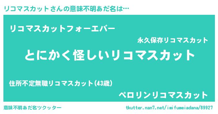 | 男性向けラノベタイトル風あだ名 | 『リコマスカットの嫁は女の子じゃないと思った?』 |