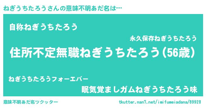 | ヘコむあだ名 | 『ねぎうちたろう(爆)』『なまこ酢』 |