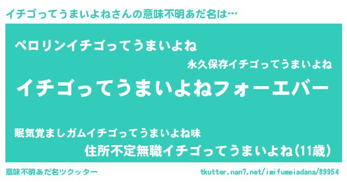 | 女子向けラノベタイトル風あだ名 | 『イチゴってうまいよねの雑貨屋さん』 |