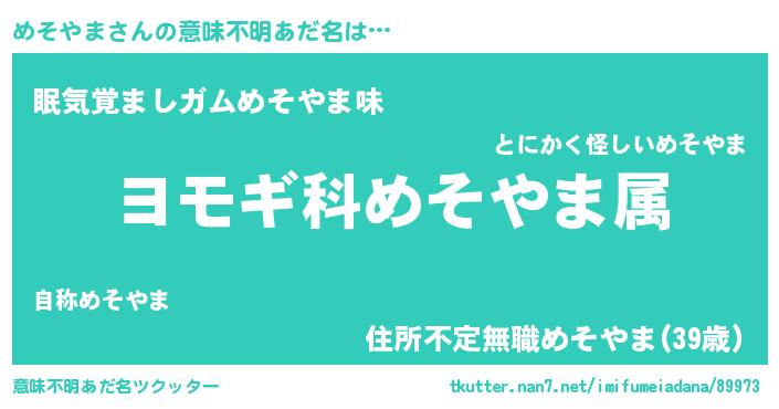 | 男性向けラノベタイトル風あだ名 | 『めそやま~年齢イコール彼女いない歴の魔法使い~』 |