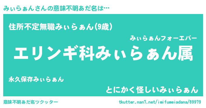 | 男性向けラノベタイトル風あだ名 | 『ミィラァンスレイヤー』 |