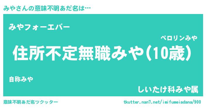 | 男性向けラノベタイトル風あだ名 | 『この素晴らしい世界にみやを!』 |
