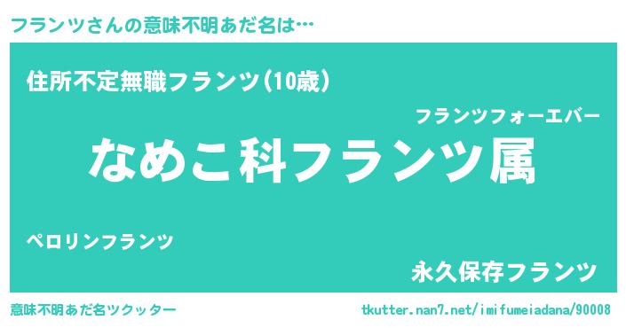 | ヘコむあだ名 | 『フランツ(爆)』『豆乳』『フラを』 |