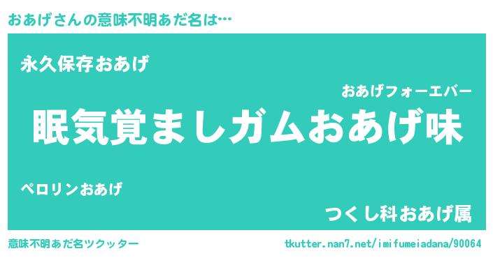 | ヒーロー風カッコイイあだ名 | 『正義の使者おあげ』『ネオオアゲ』 |