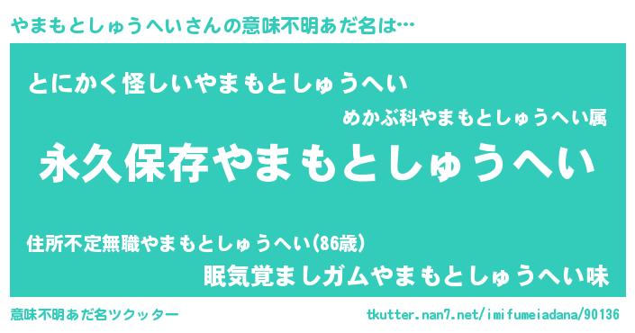 | 胡散臭い通販商品みたいなあだ名 | 『来世でも幸せになれる水素水…その名も「やまもとしゅうへい」』 |