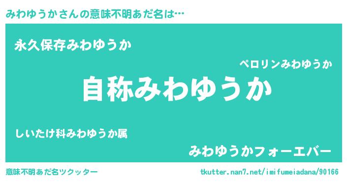 | 男性向けラノベタイトル風あだ名 | 『Re:みわゆうかから始める異世界生活』 |