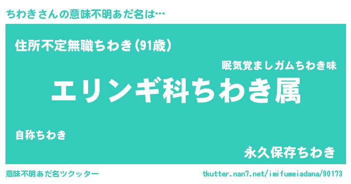| 男性向けラノベタイトル風あだ名 | 『チワキスレイヤー』 |