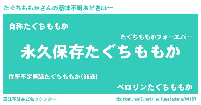 | 胡散臭い通販商品みたいなあだ名 | 『絶対に幸福をもたらす健康食品…その名も「たぐちももか」』 |