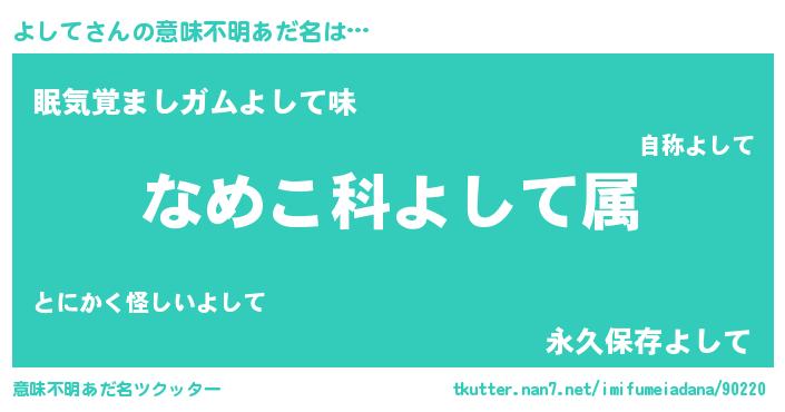 | 男性向けラノベタイトル風あだ名 | 『転生したらよしてだった件』 |