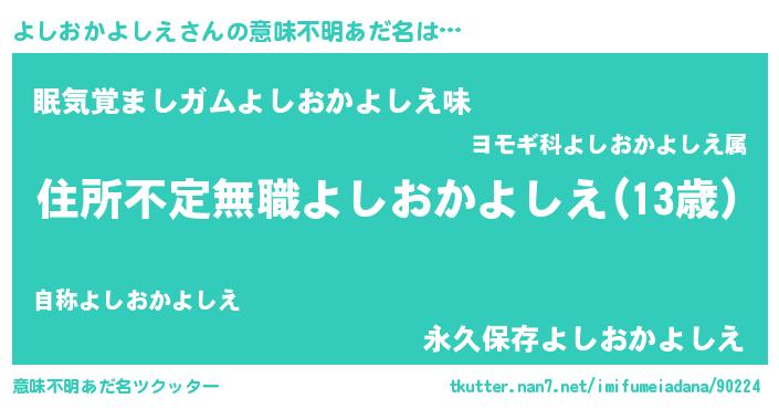 | 男性向けラノベタイトル風あだ名 | 『この素晴らしい世界によしおかよしえを!』 |