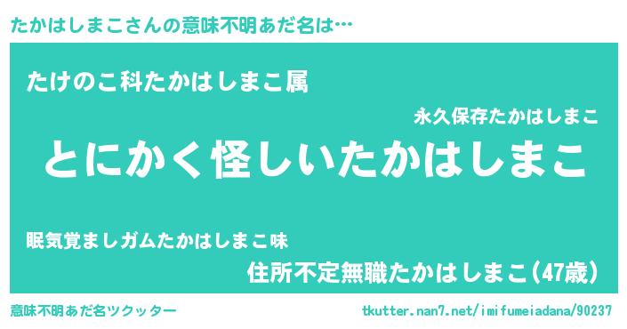 | 女子向けラノベタイトル風あだ名 | 『たかはしまこの卵を拾いまして』 |