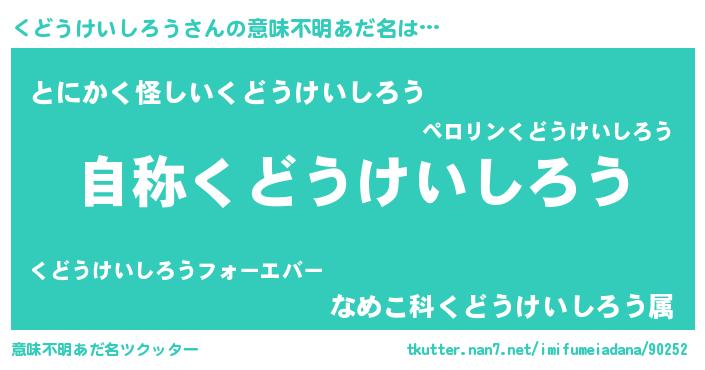 | ヒーロー風カッコイイあだ名 | 『サイバー戦士クドウケイシロウ』 |