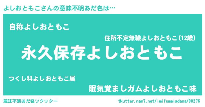| ヘコむあだ名 | 『よしおともこ(笑)』『よしっぺ』 |
