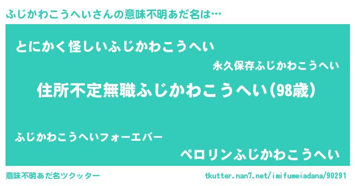 | 女子向けラノベタイトル風あだ名 | 『乙女ゲームの破滅フラグしかない悪役ふじかわこうへいに転生してしまった…』 |
