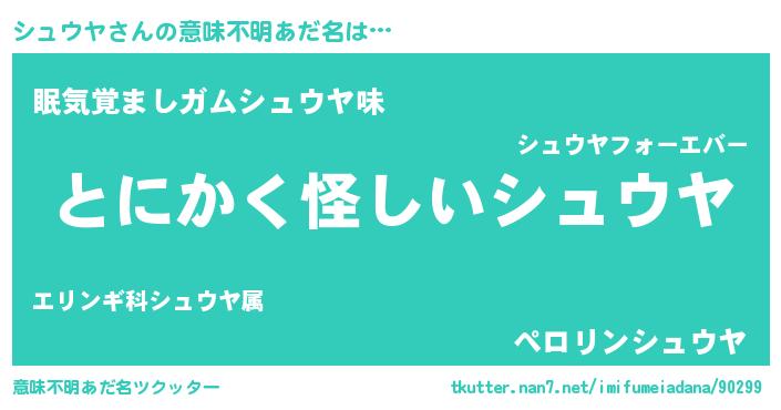 | 女子向けラノベタイトル風あだ名 | 『シュウヤ様がみてる』『シュウヤ恋絵巻』 |
