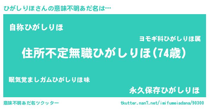 | ヘコむあだ名 | 『ひがしりほ(苦笑)』『ひがにゅー』 |