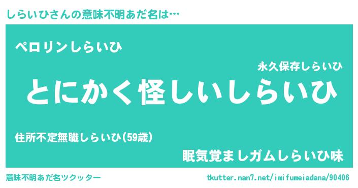 | ヘコむあだ名 | 『しらお』『しらにー』『なまこ酢』 |