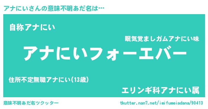 | ファンタジー風あだ名 | 『エターナルアナニイー』『ゼアナトゥ』 |
