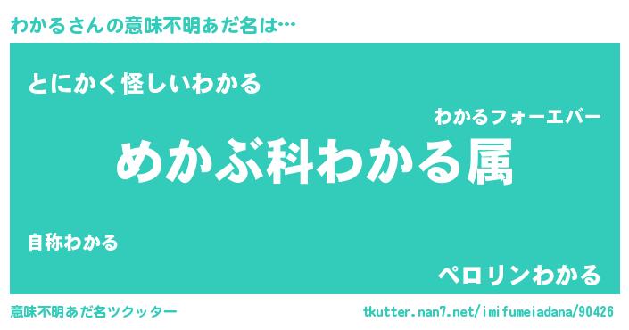 | 男性向けラノベタイトル風あだ名 | 『ワカルスレイヤー』 |