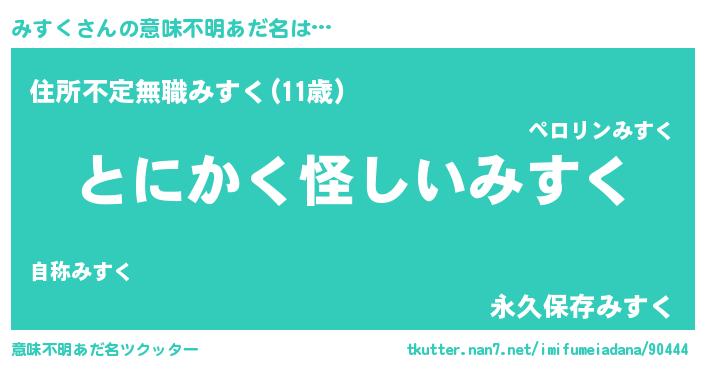 | 胡散臭い通販商品みたいなあだ名 | 『信頼と実績のサプリメント…その名も「みすく」』 |