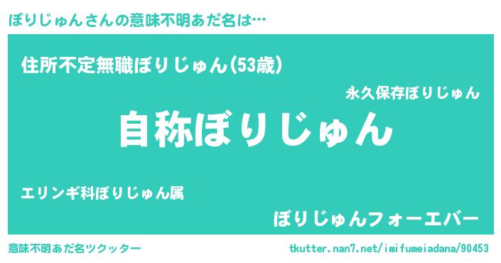 | 男性向けラノベタイトル風あだ名 | 『Re:ぼりじゅんから始める異世界生活』 |