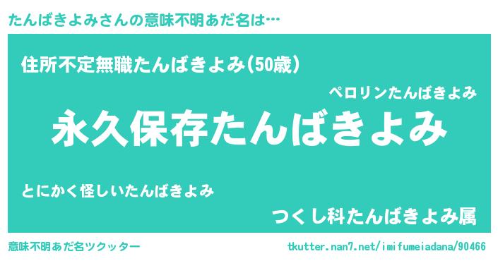 | 男性向けラノベタイトル風あだ名 | 『たんばきよみという概念が存在しない退屈な世界 』 |