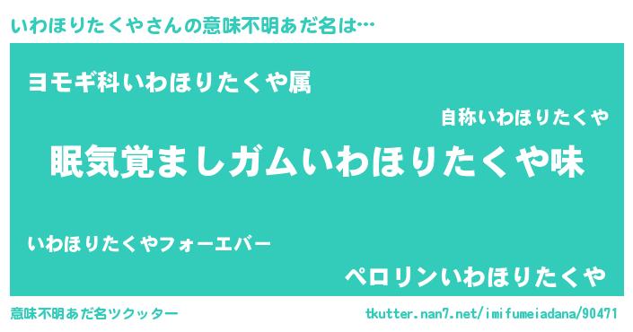 | 胡散臭い通販商品みたいなあだ名 | 『モンドセレクションを受賞した隕石のかけら…その名も「いわほりたくや」』 |