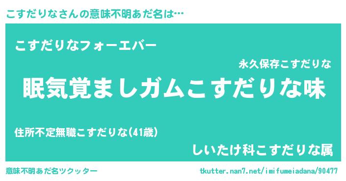 | ヘコむあだ名 | 『なまこ酢』『こすだりな(爆)』 |