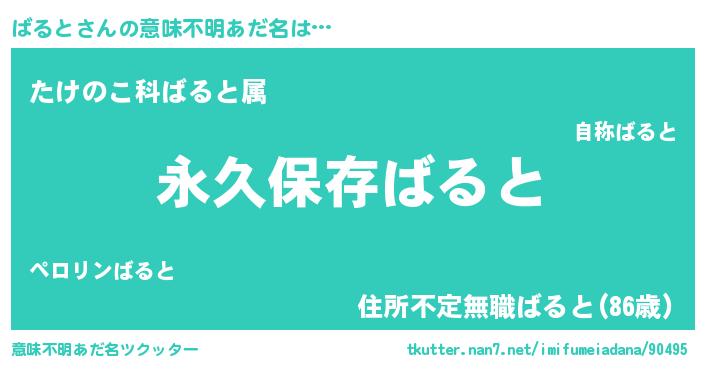 | 男性向けラノベタイトル風あだ名 | 『ばるとに滅ぼされるだけの簡単なお仕事です』 |